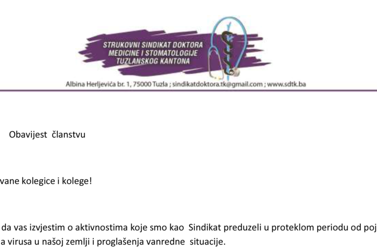 SAOPŠTENJE ZA JAVNOST: PONIŽAVAJUĆI ODNOS PREMA NOSIOCIMA ZDRAVSTVENOG SISTEMA U TK